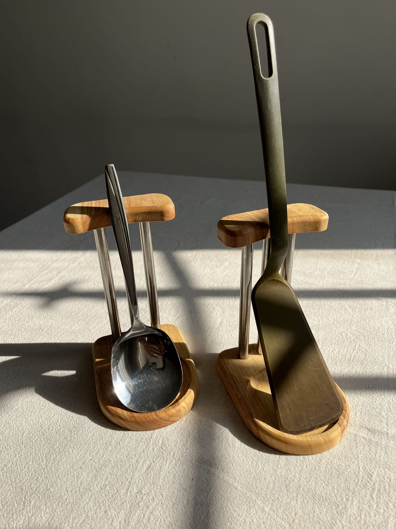 دیگه لازم نیست قاشق داغ یا کفگیر چرب رو روی کابینت یا پیشخوان بگذاری؛ این جاقاشقی مانع کثیف شدن فضای آشپزخانه میشه و همزمان ظاهر شیک و مینیمال آشپزخونه رو حفظ میکنه. ترکیب چوب طبیعی و استیل براق باعث شده هم زیبایی داشته باشه هم دوام بالا.